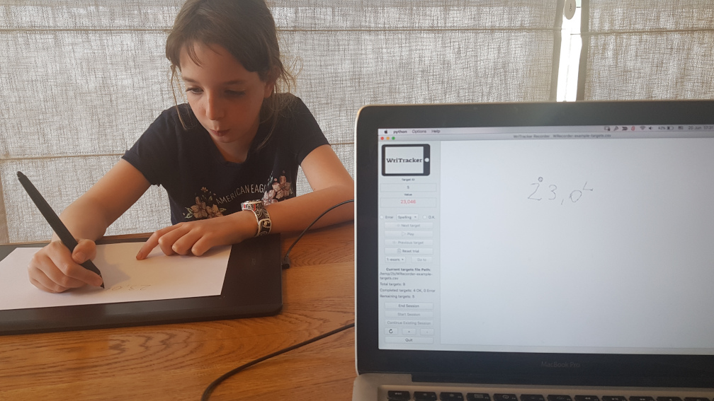 WriTracker is an application for recording people’s handwriting as they write words, numbers, etc. It lets you see what the participant wrote, mark errors, and obtain detailed information about the quality and timing of writing.